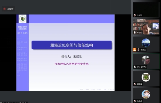 应tyc234cc 太阳成集团邀请,6月2日下午,浙江海洋大学吴伟志教授、河北师范大学米据生教授和昆明理工大学李金海教授通过腾讯会议分别做了题为:“多尺度数据的知识获取”、“粗糙近似空间与信任结构”和“模糊概念认知学习”的学术报告。报告由tyc234cc 太阳成集团副院长马建敏教授主持。统计学科部分教师、研究生以及来自西安交通大学、西安电子科技大学、空军工程大学、河北师范大学、陕西科技大学、西安石油大学等多所高校的70余名师生参加了此次报告会。
